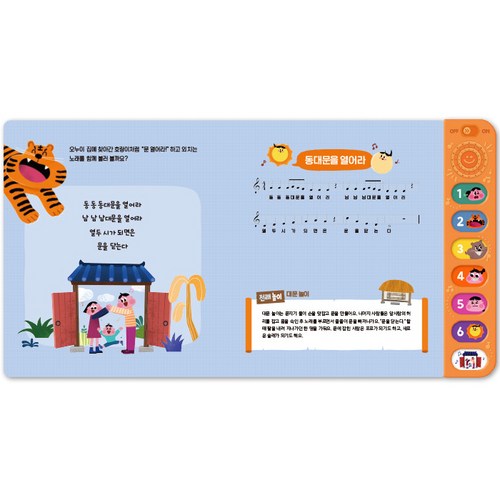 책 마지막에 나오는 전래동화 노래를 아기가 특히 좋아해요. 내용 중 무서운 장면이 하나 있는데 아이가 살짝 놀라기도 해서 저희 아기만의 반응인지 모르겠지만 귀엽더라고요. 그 외에는 조작법도 쉽고, 튼튼해서 오래 두고 사용할 수 있을 것 같아 만족합니다.