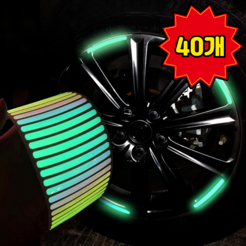 에로스빔 야간반사 휠스티커 40개세트 홀로그램 랩핑 튜닝 자동차 차량 나이트빔 스티커, 40개