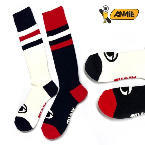 ANNIE BOARD SPORTS SOCKS 애니 스키 스노우보드 겨울 양말 성인남성 25-28cm, [줄무늬]블랙/레드, 1개