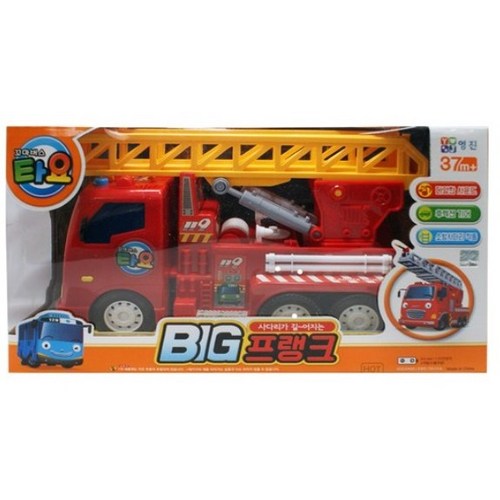 타요 시리즈 중 프랭크 소방차는 방송에서 아이가 좋아하는 장면이 많아서 구매했는데 사다리가 2단으로 조절되고 회전도 돼서 실감 나는 역할놀이가 가능했습니다. 음악과 효과음도 적당해서 아이가 신나게 가지고 놀더라고요. 다만 한 가지 바퀴가 전부 고무였으면 더 좋았겠다는 생각은 들었습니다.