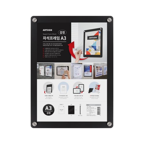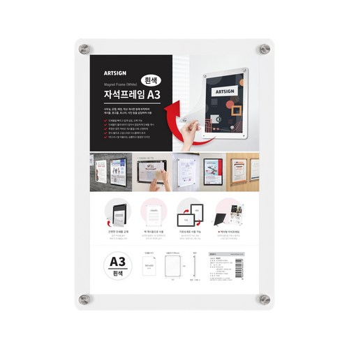 자석프레임 A3 297X420 부착용은 사무실 및 가정에서 유용하게 사용할 수 있는 필수 아이템입니다. 특별한 자석 디자인으로 쉽게 부착하고 제거할 수 있어 매번 새로운 정보를 빠르게 교체할 수 있습니다. 사이즈 A3는 포스터, 그림, 공지사항 등을 깔끔하게 전시할 수 있어 눈길을 끌며, 욕실, 주방, 사무실 등 다양한 장소에 적합합니다. 내구성이 뛰어나고 세련된 외관으로 현대적인 분위기를 연출하며, 필요한 모든 상황에서 손쉽게 사용 가능합니다.