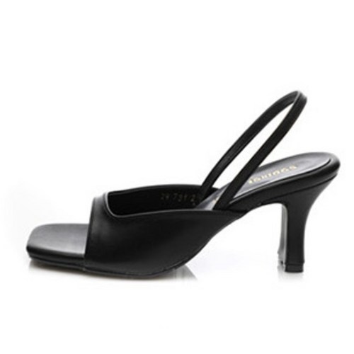 여름에 신기 좋은 시원한 디자인이라 마음에 들었어요. 굽이 있어도 안정감 있고 뒷꿈치도 아프지 않아 장시간 착용 가능했어요. 밴딩 스트랩이 잘 늘어나서 신고 벗기도 편하고, 스퀘어 앞코 덕분에 세련돼 보인답니다. 무게감이 가벼워서 부담 없이 신기 좋아요. 다만 발가락이 조금 드러나는 스타일이라 페디큐어를 하면 더 예쁠 것 같아요.