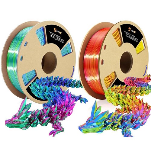 LOVOON 실크 PLA 3D 프린팅 필라멘트 번들 2KG 1.75mm 샤이니 3색 앵글 프린터 팩 블루/옐로우/레드 스풀 2개 1KG X 2개 제공