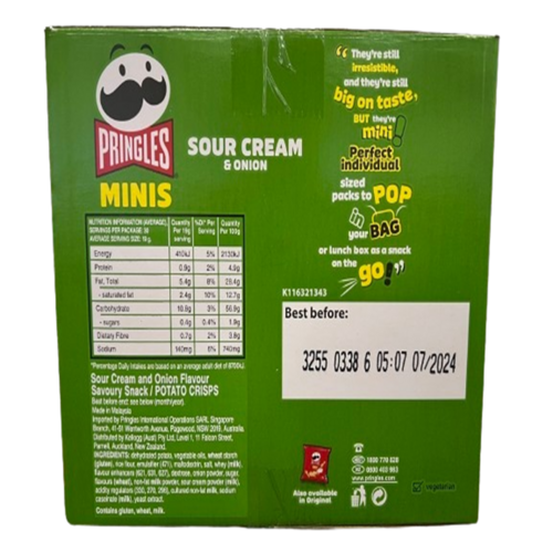 프링글스 미니 사워크림 & 어니언, 19g, 30개는 언제 어디서나 간편하게 즐길 수 있는 스낵입니다. 고소한 사워크림과 매콤한 어니언 풍미가 어우러져 누구나 사랑할 맛을 제공합니다. 개별 포장으로 휴대가 용이하며, 작업 중간간식이나 여행 시 최고의 선택이 됩니다. 또한, 파티 등 다양한 자리에서도 분위기를 살려줄 수 있는 필수 아이템입니다. 맛과 편리함을 동시에 갖춘 프링글스를 선택해보세요!