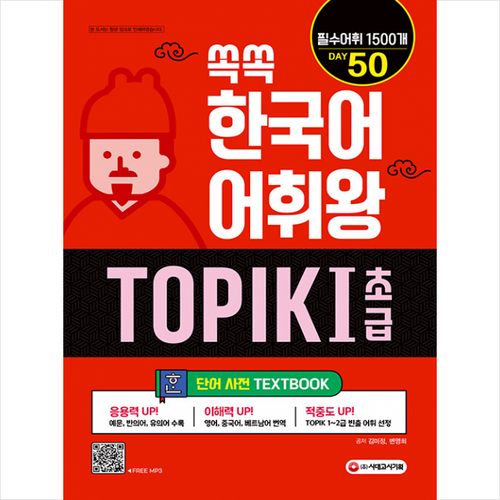 시대고시기획 쏙쏙 어휘왕 TOPIK 1 초급 단어사전 +미니수첩제공은 한국어 학습자의 필수 아이템입니다. 초급 단계의 핵심 어휘를 쉽고 체계적으로 정리하여 효율적인 학습을 돕습니다. 또한, 미니 수첩이 함께 제공되어 언제 어디서나 빠르게 단어를 익힐 수 있는 기회를 제공합니다. 이 사전은 TOPIK 시험 준비는 물론 일상적인 한국어 회화에도 유용하게 활용될 수 있어 초보자에게 적합합니다. 한국어를 배우는 모든 분들에게 유익한 이 단어사전을 만나보세요.
