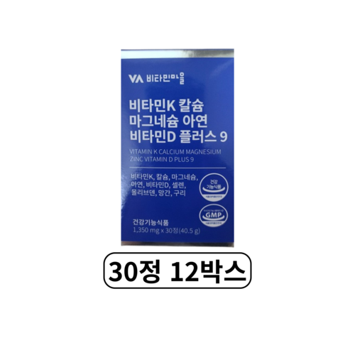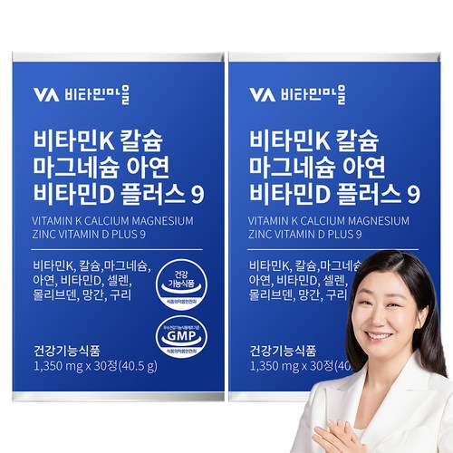비타민마을 비타민K 칼슘 마그네슘 아연 비타민D 플러스 9는 건강한 뼈와 근육 유지에 도움을 주는 종합 영양제입니다. 각종 비타민과 미네랄이 조화를 이루어 면역력 증진에 기여하며, 뼈의 밀도를 높이고 골다공증 예방에도 효과적입니다. 하루 한 알로 간편하게 영양을 보충할 수 있어 바쁜 일상에서도 쉽게 챙길 수 있습니다. 30정이 들어있는 2개 세트로 경제성까지 갖춰, 온 가족의 건강 관리에 적합한 제품입니다. 건강한 삶을 위한 좋은 선택입니다.