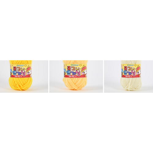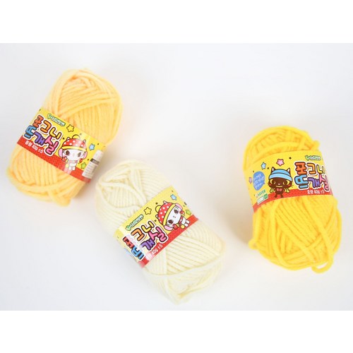 노란색 실이라 예쁘겠다 싶어 구매했는데 생각보다 색상이 약간 탁하네요. 실 굵기나 부드러움도 기대한 것보다는 약간 거친 편이었어요. 무난하게 사용할 수는 있지만 특별히 만족하진 않았습니다.