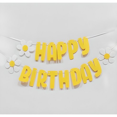 올리브파티 데이지 생일파티 펠트 가랜드 세트 꽃 3p + 해피버스데이 문구 레터링 + 끈