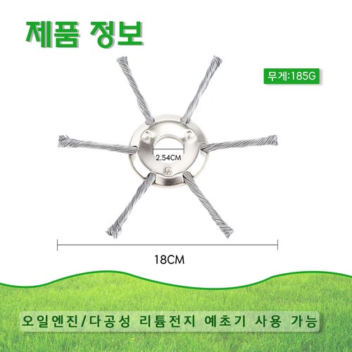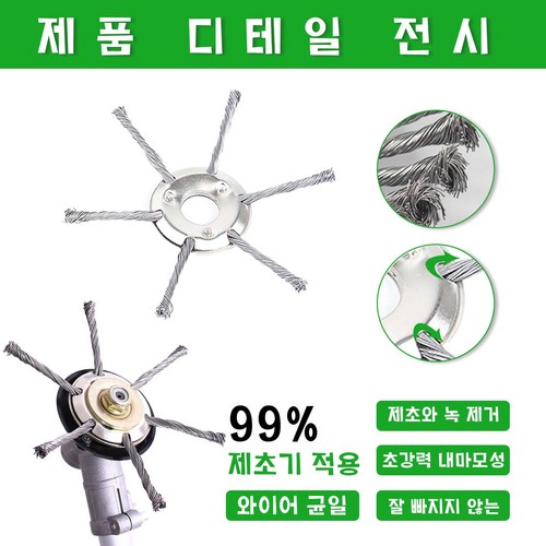 [루이/내구성] 철사 와이어 제초기 날은 콘크리트, 자갈, 이끼 제거를 위한 경량 고효율 제품으로, 빠르고 효과적인 작업을 도와줍니다. 이 제품은 내구성이 뛰어난 철사 소재로 제작되어 오랜 사용에도 강한 성능을 발휘합니다. 특히, 일반 나일론 제품과 비교할 때 월등한 효율을 자랑하며, 사용자가 원하는 작업을 더욱 수월하게 해줍니다.