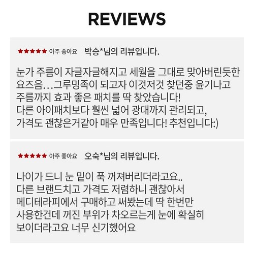 전성분 하이드롤라이즈드콜라겐(70%), 글리세린, 정제수, 아크릴레이트코폴리머, 1,2-헥산다이올, 나이아신아마이드, 카라기난, 캐롭검, 포타슘클로라이드, 잔탄검, 알란토인, 젤란검, 트레할로오스, 수크로오스, 셀룰로오스검, 베타인, 판테놀, 하이드록시아세토페논, 소듐폴리아크릴레이트, 카프릴릴글라이콜, 부틸렌글라이콜, 프로판다이올, 폴리글리세릴-10라우레이트, 쑥잎추출물, 에틸헥실글리세린, 아데노신, 향료, 달팽이점액여과물, 유자추출물, 녹차추출물, 레시틴, 알지닌, 하이드롤라이즈드엘라스틴, 소듐하이알루로네이트, 에틸헥산다이올, 세라마이드엔피, 토코페릴아세테이트, 황벽나무껍질추출물, 작약뿌리추출물, 짚신나물추출물, 감초뿌리추출물, 약모밀추출물, 에스에이치-올리고펩타이드-1, 에스에이치-올리고펩타이드-2, 에스에이치-폴리펩타이드-1, 에스에이치-폴리펩타이드-22
