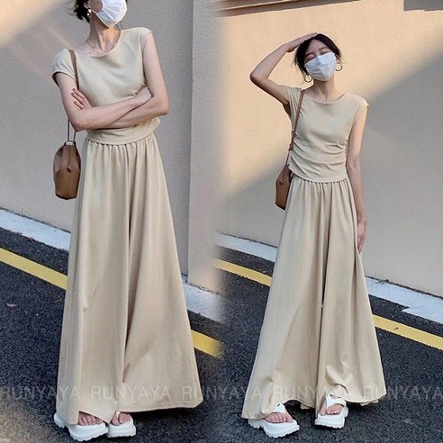와이드 핏 바지 트레이닝 데일리 팬츠 + 크롭 반팔티 반팔 티셔츠 여성 상하세트 D88U