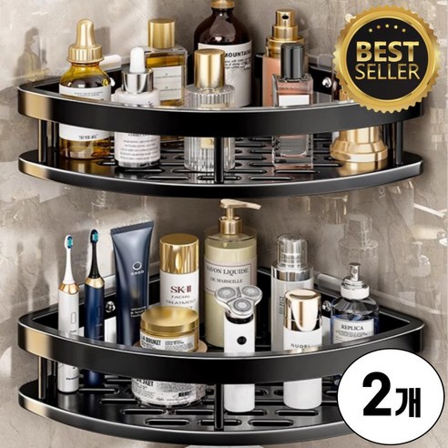 조은마음 1+1 무타공 욕실 화장실 코너 선반 수납 정리대, 2개입, 맷블랙