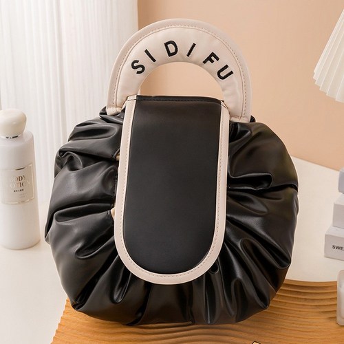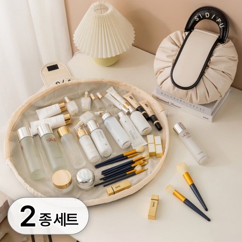 투데이리빙 2종 세트 요술 보자기 파우치는 여행용으로 최적화된 대용량 수납 이너백입니다. 넉넉한 사이즈와 다용도 방수 기능으로 화장품, 차 내부 용품 등 필요한 물건들을 깔끔하게 정리할 수 있습니다. 당겨서 오므리는 타입으로 손쉽게 필요한 만큼 펼쳐 사용할 수 있으며, 차에서도 굴러다니지 않아 편리한 사용을 제공합니다. 겉면은 고급스러운 가죽 느낌으로 무게감 있는 디자인이 매력적이며, 폭신한 손잡이로 휴대할 때 편안함을 더합니다. 또한, 방수 기능 덕분에 화장품이 묻어도 간편하게 씻어서 관리할 수 있어 위생적입니다. 헐렁하게 가방에 넣지 않아도 되며, 미니 파우치가 포함되어 있어 붓이나 펜슬 등 소품을 따로 정리하는 것도 가능합니다. 정리의 귀찮음을 줄여주어 사용자들에게 큰 호평을 받은 이 요술 파우치는 여행 시 필수 아이템으로, 공간 절약과 효율적인 정리를 한 번에 해결해 줍니다. 정리가 쉽고 유용하게 사용할 수 있는 이 제품은 여행을 즐기는 분들에게 최상의 선택이 될 것입니다.