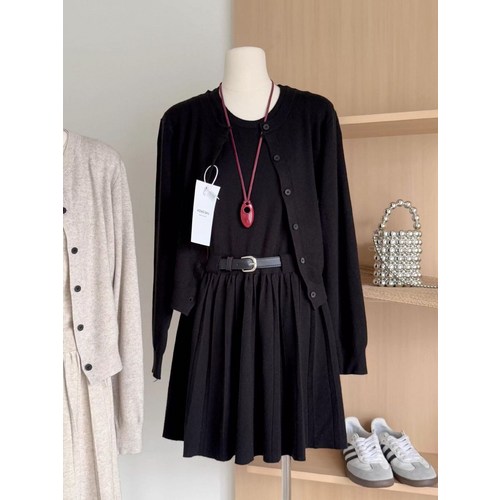 투피스 오트밀 세트 빅사이즈 플리츠 가을 미니 셋업 데일리 가디건 니트원피스