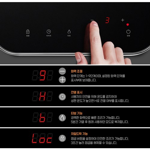 블랙 컬러에 슬림한 디자인이 주방과 잘 어울리고 세라믹 글라스 상판 덕분에 청소도 간편해서 만족스러워요. 터보 부스터 기능으로 빠르게 가열할 수 있고, 자동 전원 차단 기능으로 안전까지 챙겨줘서 안심하고 사용할 수 있었습니다. 가성비 괜찮다고 느껴졌어요.