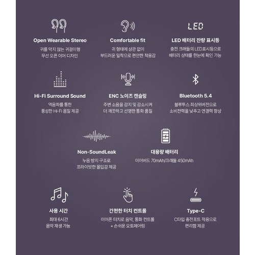 처음엔 오픈형이라 차음이 약할까 걱정했는데, 사용해보니 오히려 답답하지 않고 착용감이 정말 편안하더라고요. 귀를 완전히 막지 않아서 장시간 써도 부담 없었어요. 음질도 예상 이상으로 깔끔했고, AAC 코덱 덕분인지 영상과 음악 모두 선명하게 잘 들렸습니다. 통화 시 ENC 노이즈 캔슬링 기능도 소음이 잘 잡혀서 야외에서도 목소리가 또렷하게 전달됐어요.