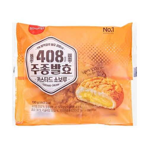 삼립 408시간 주종발효 카스타드소보루는 부드럽고 촉촉한 빵 사이에 달콤한 카스타드 크림이 들어 있어 한 입 베어물면 풍부한 맛의 조화가 느껴집니다. 408시간의 정성과 노하우가 담긴 주종발효 방식으로 만들어져 더욱 풍미가 깊어져 식사 후 디저트 또는 간식으로 안성맞춤입니다.