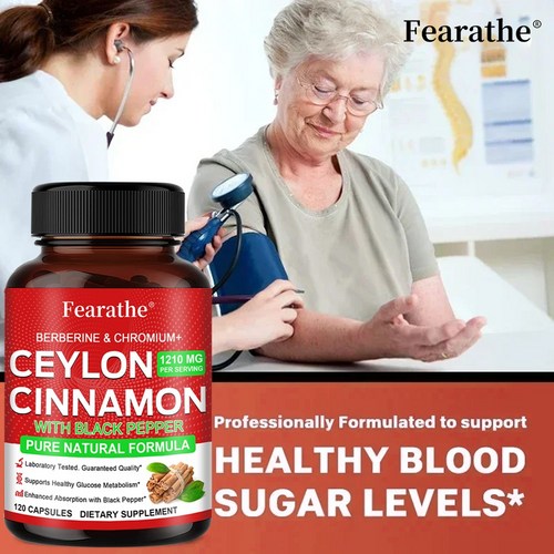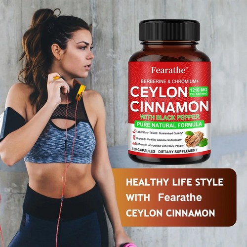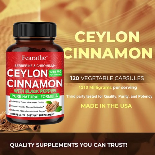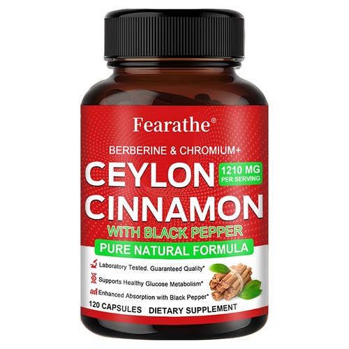 실론 계피 + 베르베린 및 크롬 캡슐 - 흡수 강화 건강한 혈당 지원 포도당 대사 지원 심혈관 건강 면역 지원 강력한 항산화제 및 전반적인 건강을 위한 흑후추 함유