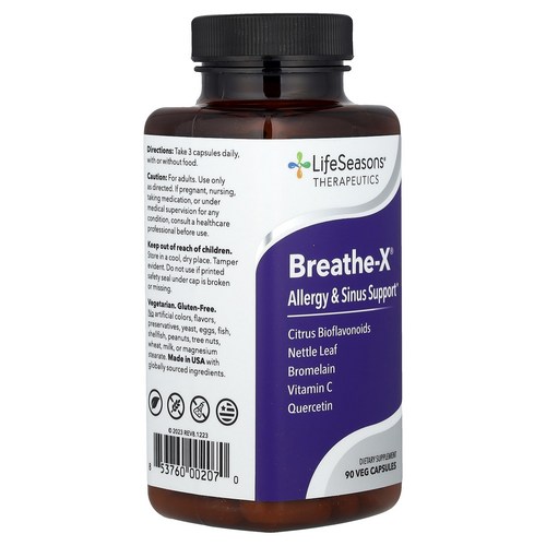 라이프시즌스 Breathe-X 알러지 시너스 써포트 베지캡슐 90정은 알러지와 코막힘으로 인해 고생하는 분들을 위한 최적의 선택입니다. 이 제품은 천연 성분을 기반으로 허브와 비타민, 미네랄이 조화를 이루어 시너스와 호흡을 지원하는 데 도움을 줍니다.
