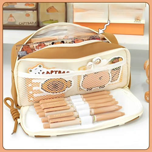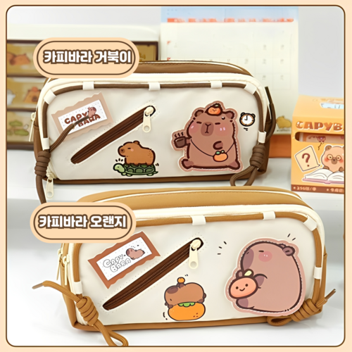 카피바라 캐릭터를 좋아하는 아이가 직접 고른 제품이라 그런지 더 애착을 가지고 사용하네요. 여러 칸으로 나누어진 내부 덕분에 필요한 도구들을 잘 정리할 수 있고, 소재 덕분에 소리도 거의 나지 않아 학교에서 조용히 쓸 수 있다고 합니다. 디자인과 기능성 모두 기대 이상이네요.