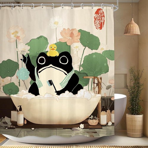 LGhtyro 재미있는 카우보이 개구리 샤워 커튼 욕실 세트 183.1cm x 높이 198.1cm 엑스트라 롱 웨스턴 로데오 동물 모자 일본 미술 아시아 전통 목욕 액세서리 귀