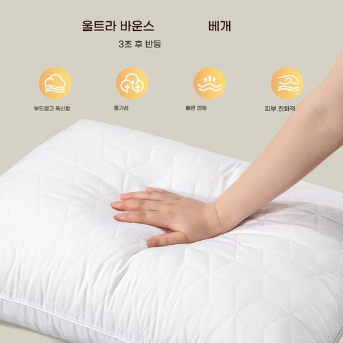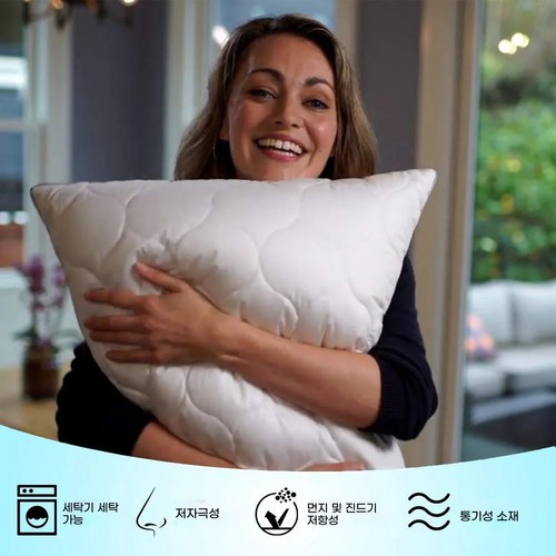 적당히 탄탄하면서도 폭신한 베개라서 호텔에서 사용하는 베개 같다는 생각이 들었어요. 커버 없이 사용해도 재질이 좋아서 기분 좋고요. 세탁 후에도 금방 말라서 뽀송뽀송한 상태가 유지돼서 관리가 무척 편했습니다. 실제로 숙면에 도움이 된다는 느낌이 들 정도였어요.