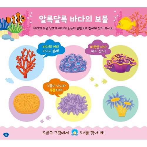 써보니 색칠하면서 집중하는 시간이 길어져서 놀랍네요. 특히 페이지에 동물 힌트도 있어서 서로 질문하며 놀다 보니 인지력 향상에도 도움이 되는 것 같아요. 아이와 대화도 많이 하게 되고 재미있는 놀이책입니다.