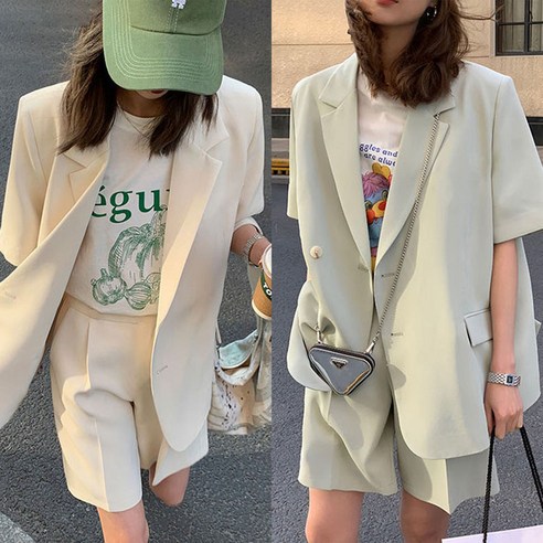 여름 반팔 투피스 세트 여성 자켓 밴딩 반바지 정장 밴딩팬츠 캐주얼 상하의 오피스룩 세미정장