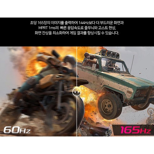 모니터 본체부터 스탠드, 전원 어댑터, 케이블까지 필요한 구성품이 빠짐없이 들어있어 설치할 때 편리했어요. 포장도 안전하게 되어 있어서 제품에 손상 없이 잘 받았습니다. 게이밍답게 165Hz 주사율과 1ms 응답속도 덕분에 화면 전환이 부드러워서 영상 작업이나 가벼운 게임용으로 쓰기 좋았습니다.
