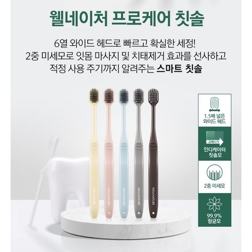 칫솔 교체 시기를 색깔로 알려줘서 관리가 편해요. 막상 사용해보니 적당히 부드러우면서 잇몸 마사지도 돼서 오랫동안 신경 써서 양치하게 되더라고요. 평소 칫솔 헤드가 작으면 불편했는데 이 제품은 넓은 헤드 덕에 빠르게 양치할 수 있어 좋아요.