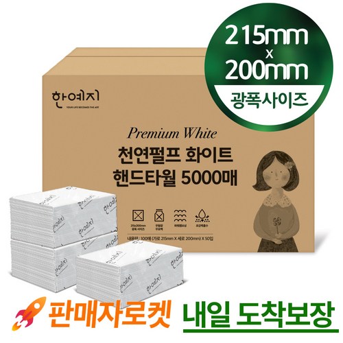 한예지 천연펄프 화이트 핸드타올 5000매는 높은 흡수력과 부드러운 촉감을 자랑하는 제품으로, 일상 속에서 편리하게 사용할 수 있습니다. 특히 가족 구성원이 많거나 자취를 하는 분들에게 넉넉한 양으로 제공되어 경제적인 선택이 될 것입니다.