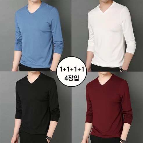 남성용 봄가을 캐주얼 만능 베이스 슬림 핏 마름감 브이넥 긴소매 티셔츠 안감 상의