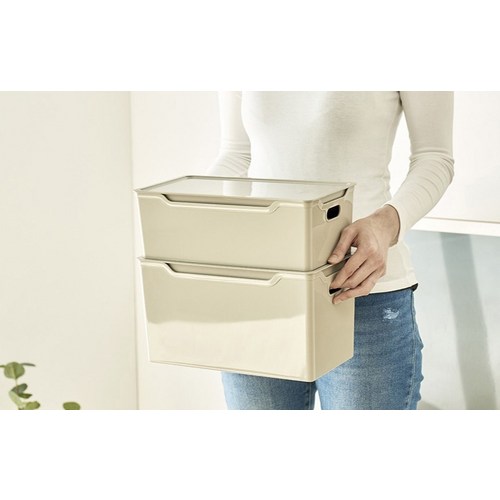 쌓아서 사용할 수 있어 공간 활용이 좋아요. 한쪽에 라면 넣고 다른 데는 잡동사니 정리했는데 깔끔해지네요. 뚜껑이 있어서 먼지도 안 들어가고 위에 다른 물건을 올려놓아도 안전해요. 다만 완전히 고정되는 건 아니라서 높은 곳엔 조금 불안한 느낌입니다.
