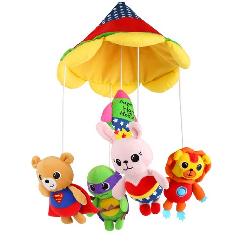 막상 써보니 화려한 색감과 부드러운 소리에 아기가 흥미로워하네요. 인형들이 각기 다른 소리를 내서 아이가 자주 만지며 놀아요. 다만 인형 줄 길이가 같아 조금 비스듬히 배치하는 등 위치 조정이 필요했어요. 그래도 전체적으로 견고하고 귀여워 만족합니다.
