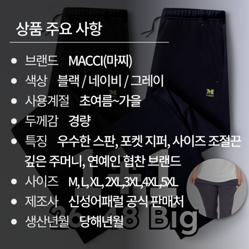 MACCI (마찌) 트레이닝 바지 빅사이즈 스판 츄리닝은 모든 체형에 맞춰 개발된 제품으로 편안한 착용감과 뛰어난 신축성을 자랑합니다. 이 정품 트레이닝 바지는 실내 운동은 물론, 외출 시에도 손쉽게 스타일링할 수 있는 다재다능한 패션 아이템입니다.