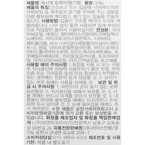 입술을 보호하고 보습하는 동시에 개성을 살릴 수 있는 위시캣 립케어 립밤으로 건강한 입술을 유지해보세요. 사용 후 느껴지는 상쾌함과 달콤함은 일상의 작은 행복을 선사할 것입니다. 다양한 캐릭터와 딸기향을 통해, 매일매일 새로운 기분으로 입술을 케어해보세요.