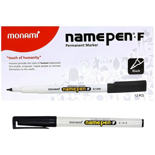 모나미 중간글씨용 네임펜 Fine, 흑색, 12개는 다양한 용도로 활용 가능한 필기구입니다. 이 네임펜은 중간 굵기의 펜촉을 갖추고 있어 깔끔하고 세련된 글씨체를 만들어줍니다. 흑색 잉크는 명확하고 선명한 필기를 가능하게 해 주며, 일상적인 노트 필기, 아트 작업, 라벨링 등 여러 용도로 적합합니다.