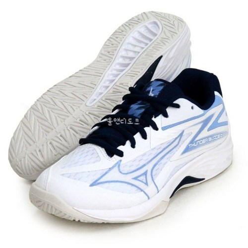 미즈노의 선더 블레이드 Z는 기능성과 디자인을 모두 갖춘 배구화로, 화이트와 블루의 조화로운 색상은 스타일을 중시하는 여성들에게 기분 좋은 변화를 선사합니다.